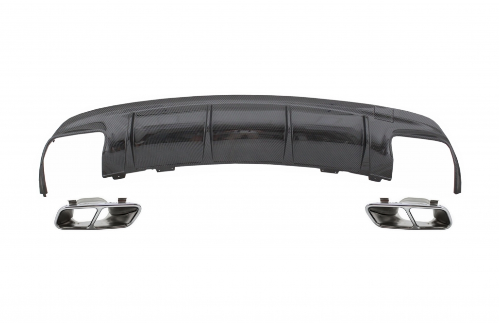Oferă mașinii tale un look sportiv și elegant cu acest difuzor bara spate Mercedes CLA W117, realizat în stil CLA45 Design, cu finisaj carbon design și ornamente crom pentru evacuare. Este alegerea potrivită pentru cei care vor să îmbunătățească aspectul exterior al autoturismului fără compromisuri la nivel de stil.