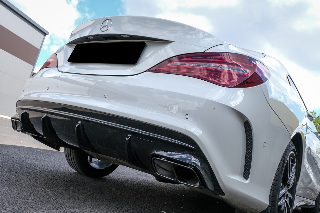 Utilizare: produs destinat upgrade-ului estetic al părții din spate, pentru șoferii care doresc un look CLA45 fără a compromite compatibilitatea cu modelele Mercedes CLA W117 și X117 din intervalul 2013-2018.