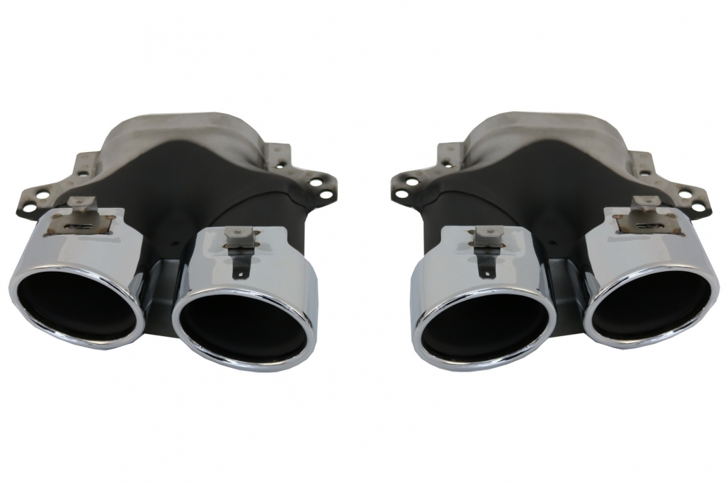 IMPORTANT! Pentru a monta corect difuzorul si pentru a preveni deteriorarea, va rugam sa retineti ca teava finala trebuie sa intre in ornamenele de evacuare ale difuzorului de aer. Debitul de gaz nu trebuie sa fie directionat sub masina, trebuie sa iasa prin ornamenele de evacuare ale difuzorului de aer. Instructiunile de instalare nu sunt incluse Va recomandam instalarea intr-un service auto autorizat.