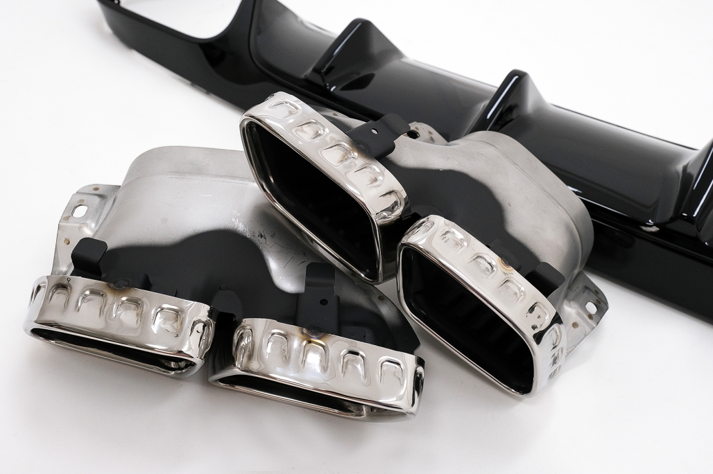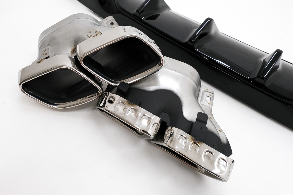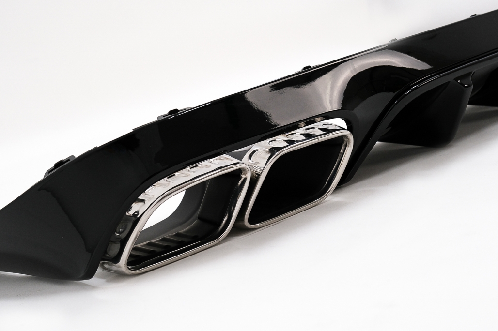 Fabricat din polipropilenă, difuzorul oferă o bună rezistență la utilizarea zilnică și un finisaj modern, în negru mat, completat de ornamente evacuare crom. Designul inspirat de E63 evidențiază linia sportivă a coupe-ului sau cabrio-ului și contribuie la un look premium, elegant și dinamic.