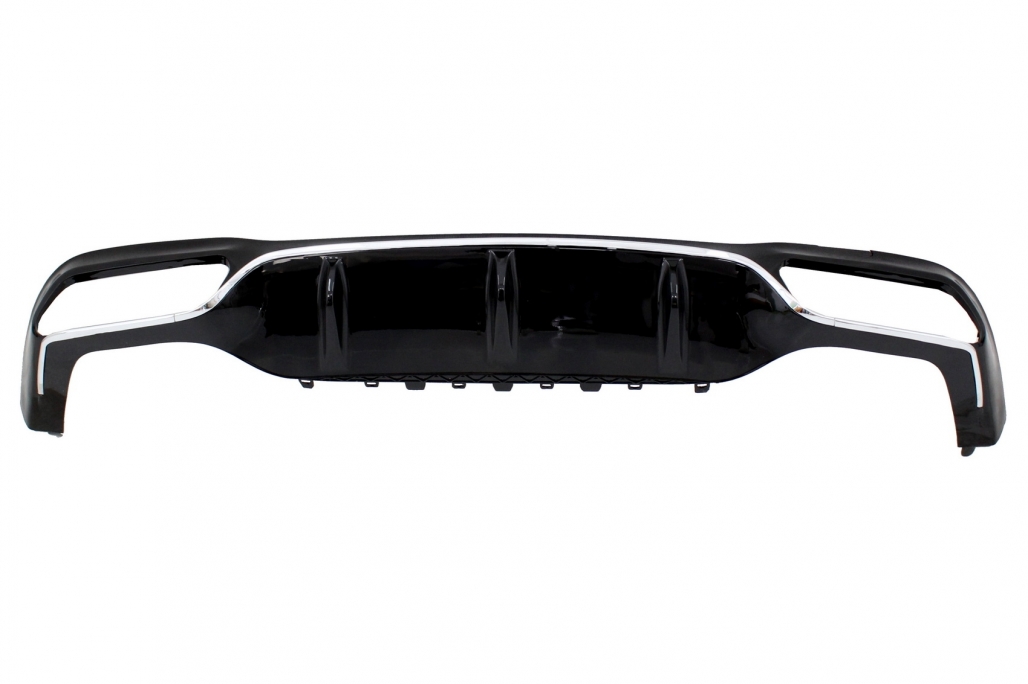 Acest difuzor spate Mercedes W213 este fabricat din polipropilenă, material apreciat pentru rezistență și durabilitate în utilizarea de zi cu zi. Finisajul cromat evidențiază partea din spate a mașinii și contribuie la un aspect premium, inspirat de modelele de performanță.