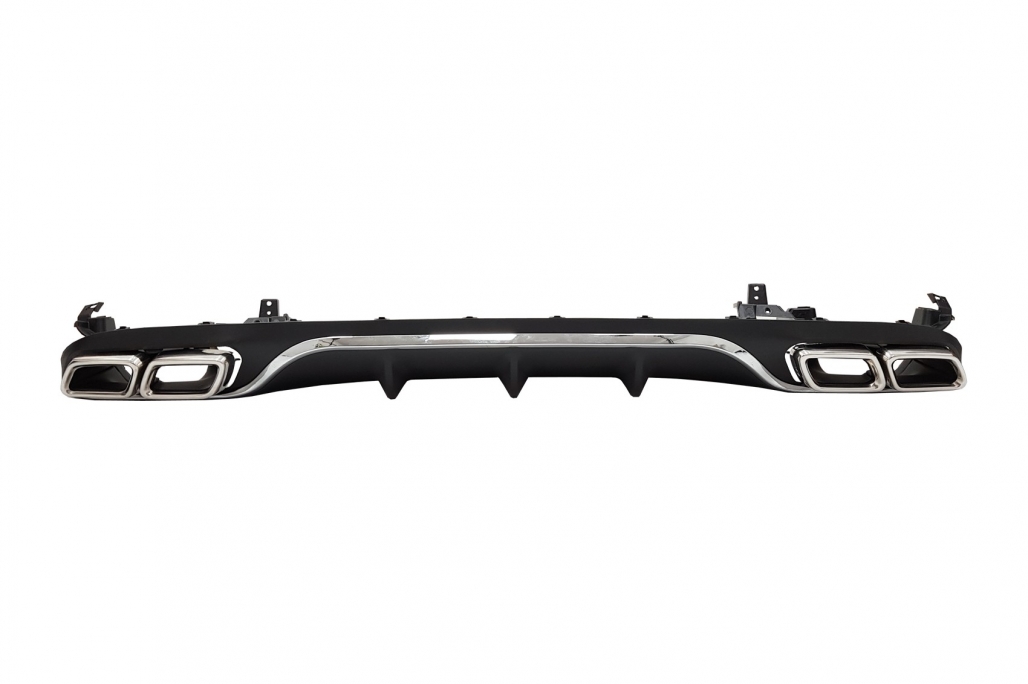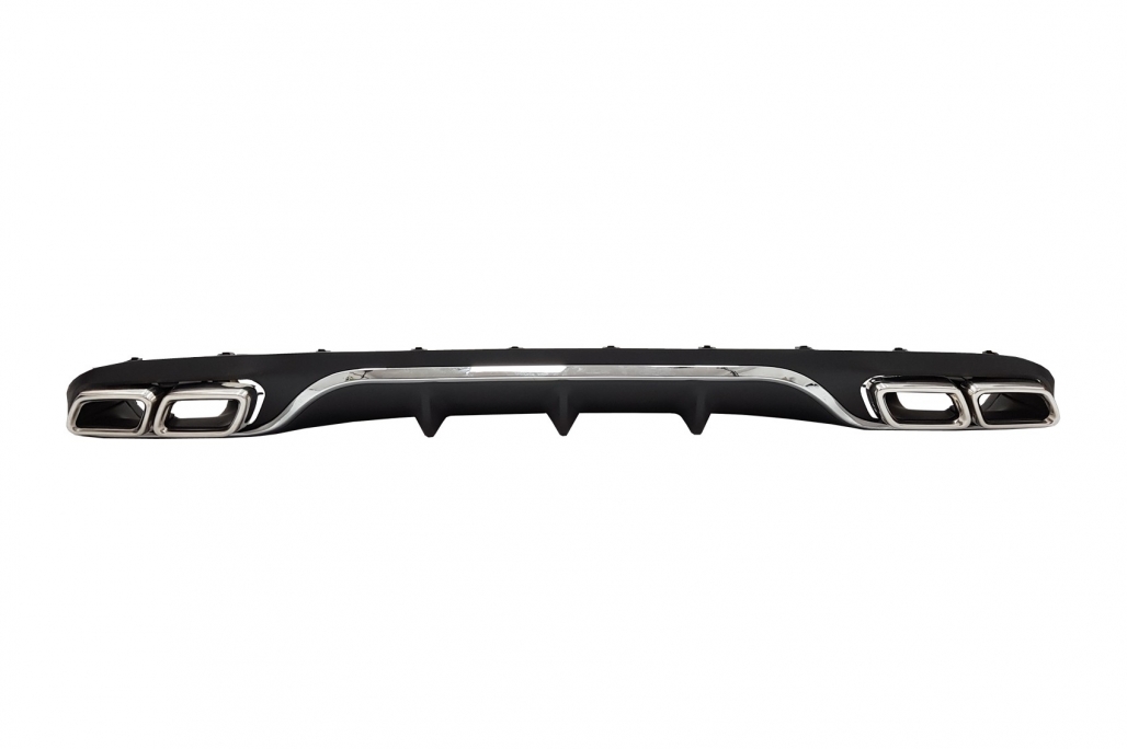 Oferă mașinii tale un plus de personalitate cu acest difuzor bara spate Mercedes E-Class W213/S213, realizat în stil E63 Design. Este alegerea potrivită dacă vrei un aspect mai sportiv și elegant, păstrând în același timp o integrare vizuală foarte bună cu liniile originale ale caroseriei. Finisajele cromate și forma ornamentelor de evacuare completează perfect partea din spate a automobilului.