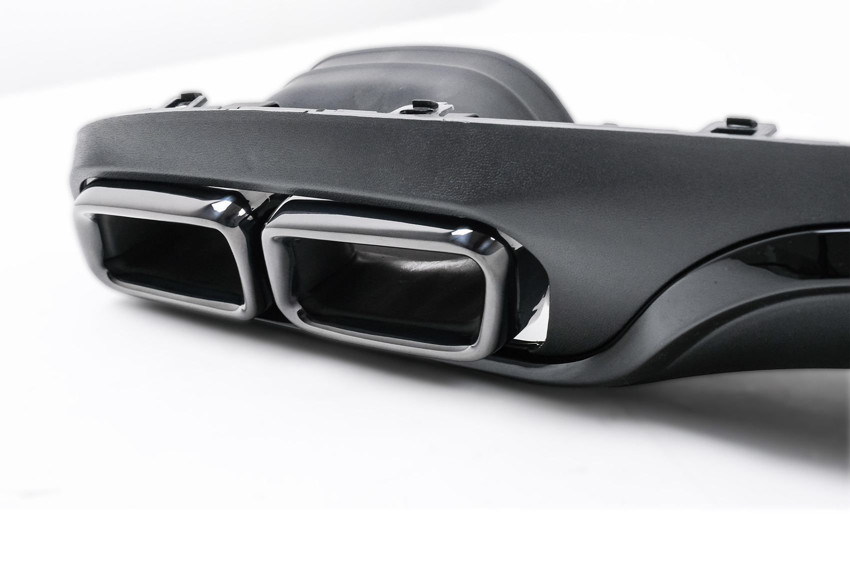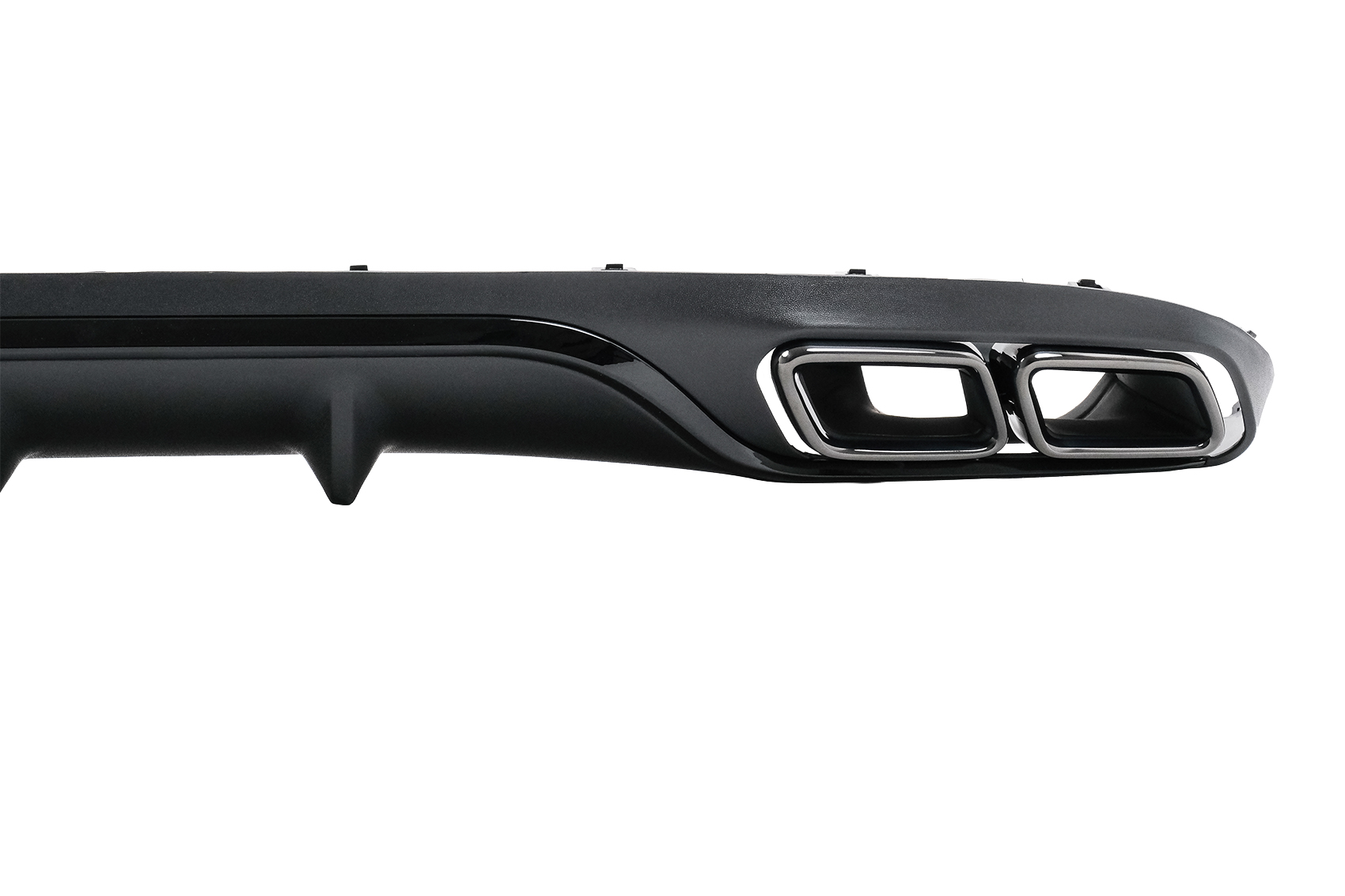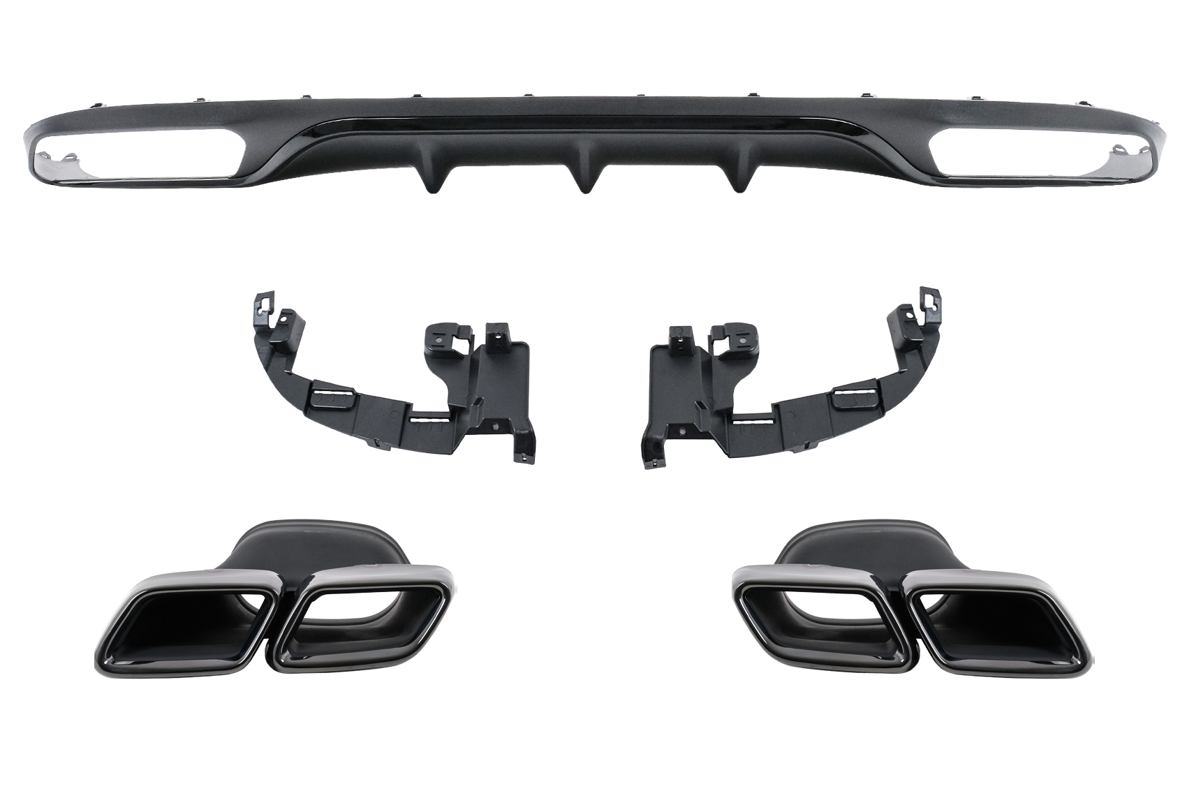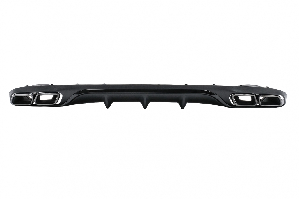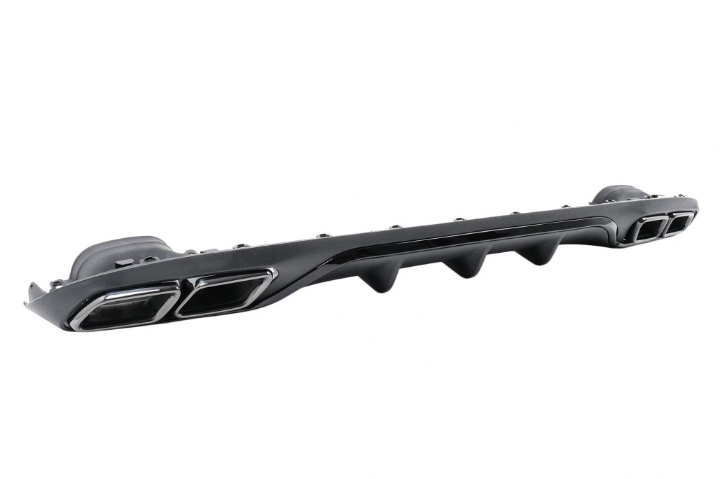 Setul include difuzor spate si ornamente evacuare stanga/dreapta, fiind o alegere potrivita pentru soferii care isi doresc un upgrade vizual de calitate, cu finisaj modern negru si accente metalice elegante.