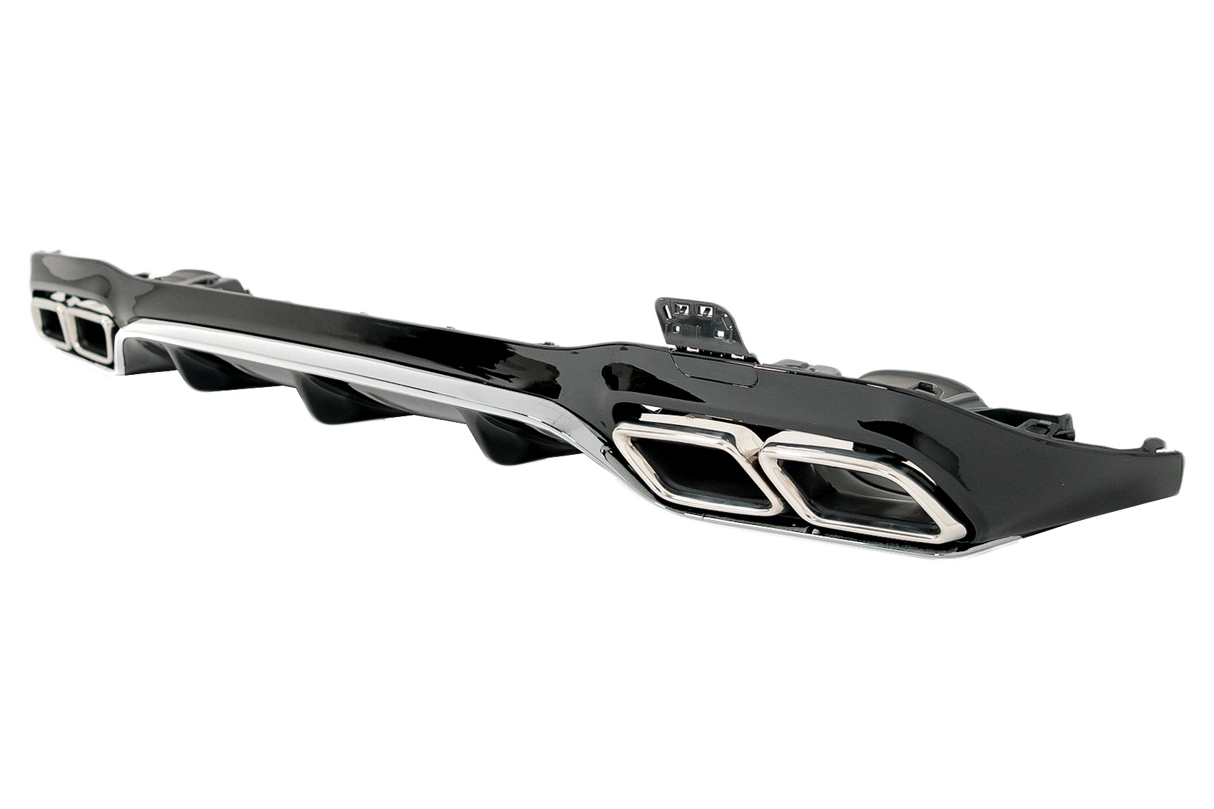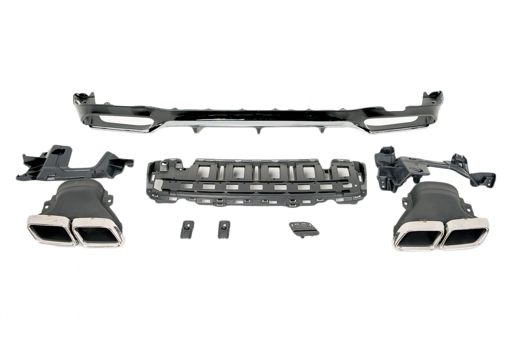 Oferă un plus de stil și sportivitate mașinii tale cu acest difuzor bara spate Mercedes E-Class W213, realizat în design E63. Este alegerea potrivită pentru șoferii care vor un aspect mai agresiv, elegant și bine integrat cu linia originală a vehiculului. Finisajul negru lucios și ornamentele de tobă cromate completează perfect partea din spate a mașinii.