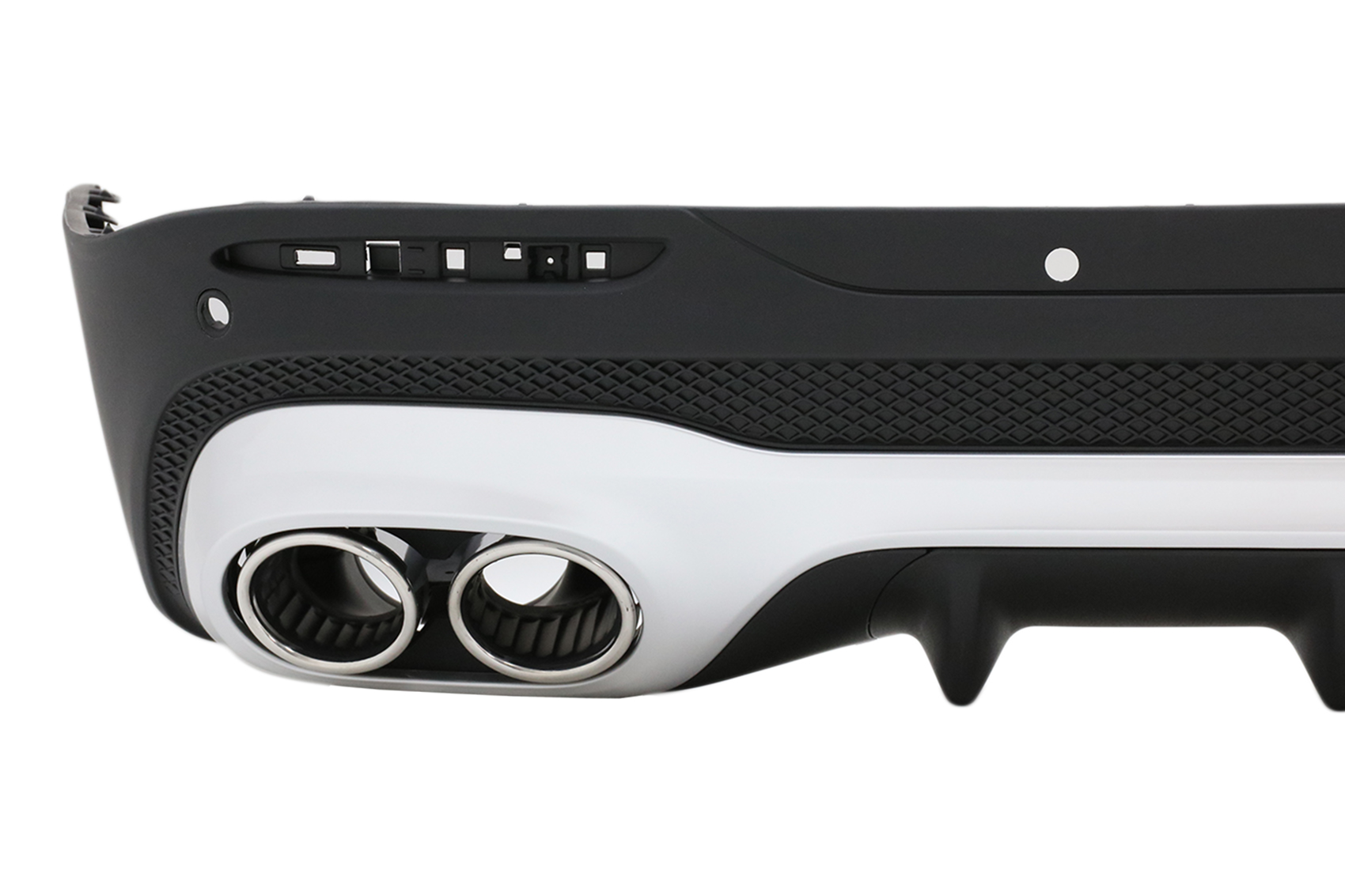 Ofera-i masinii tale un plus de stil cu acest difuzor bara spate Mercedes GLB X247, conceput pentru a evidentia linia SUV-ului si pentru a crea un look modern, sportiv si bine finisat. Pachetul include si ornamente evacuare crom, pentru un aspect premium si o integrare vizuala eleganta in partea din spate a vehiculului.