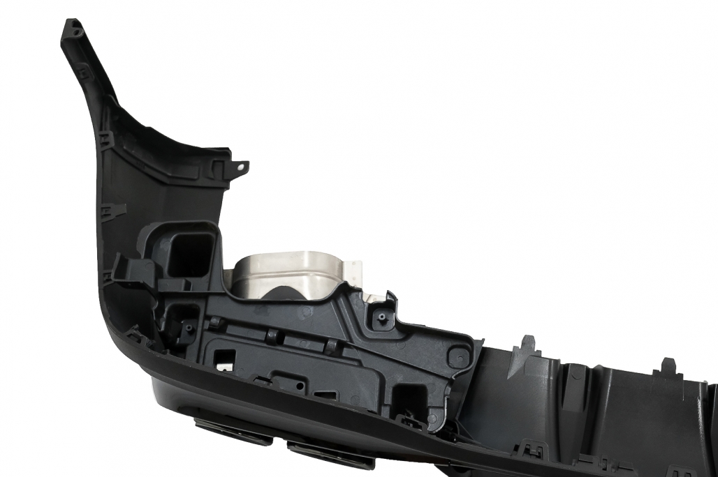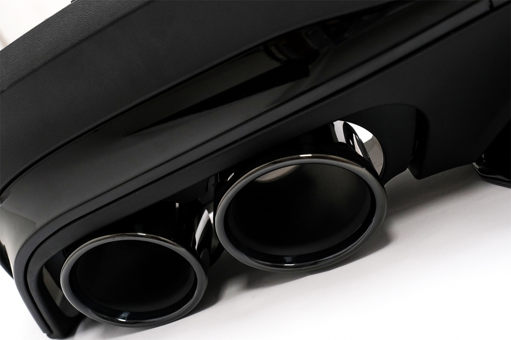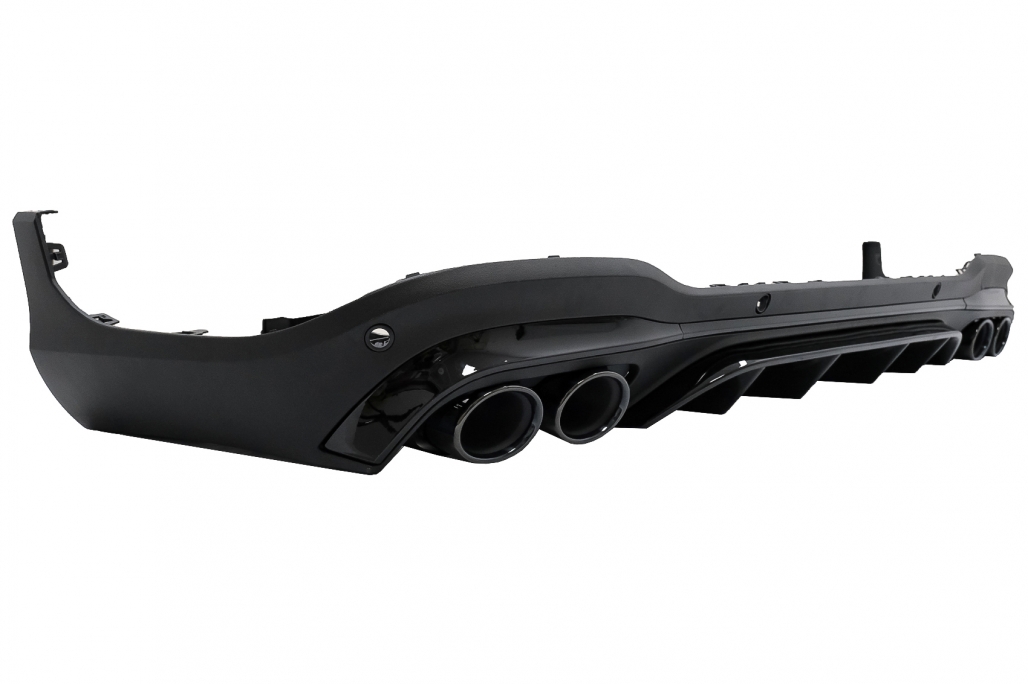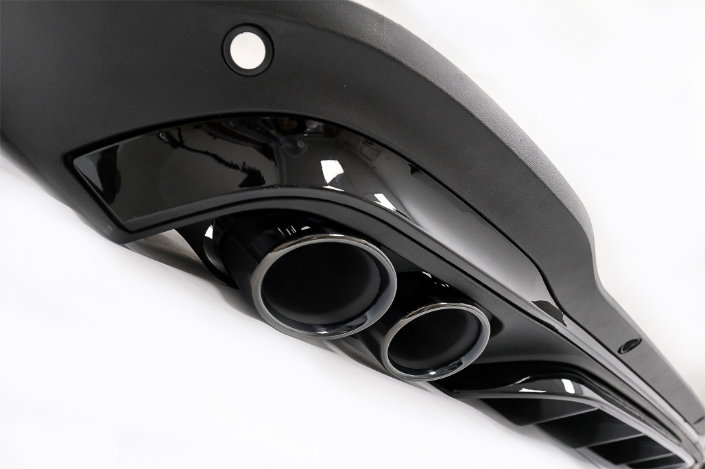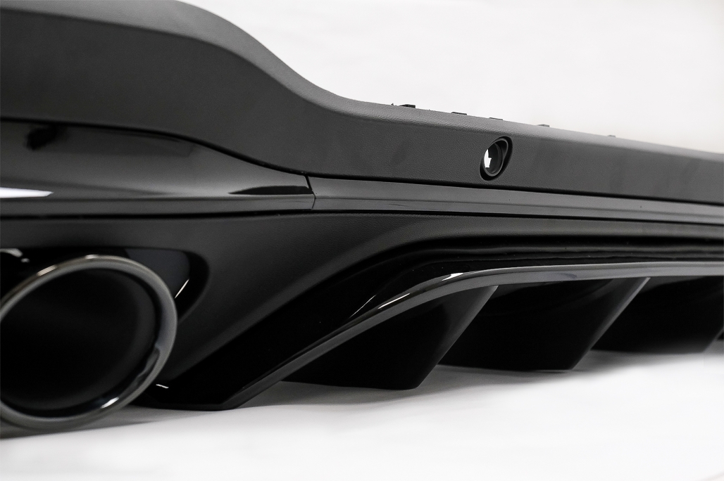 Produsul este fabricat din ABS de înaltă calitate, rezistent la uzură și potrivit pentru utilizare de zi cu zi. Difuzorul este prevăzut cu locașuri pentru senzorii de parcare PDC și include ornamente pentru evacuare din oțel inoxidabil 304, pentru un finisaj modern și durabil.