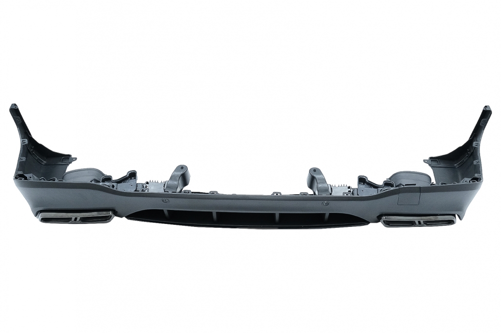 Acest difuzor spate Mercedes GLC X253 este realizat din polipropilenă, un material rezistent și potrivit pentru utilizare auto, iar ornamentele evacuării sunt fabricate din oțel inoxidabil 304. Produsul este prevăzut cu suporturi pentru senzorii de parcare PDC și cu evacuări decorative duble, pentru un plus de personalitate vizuală.