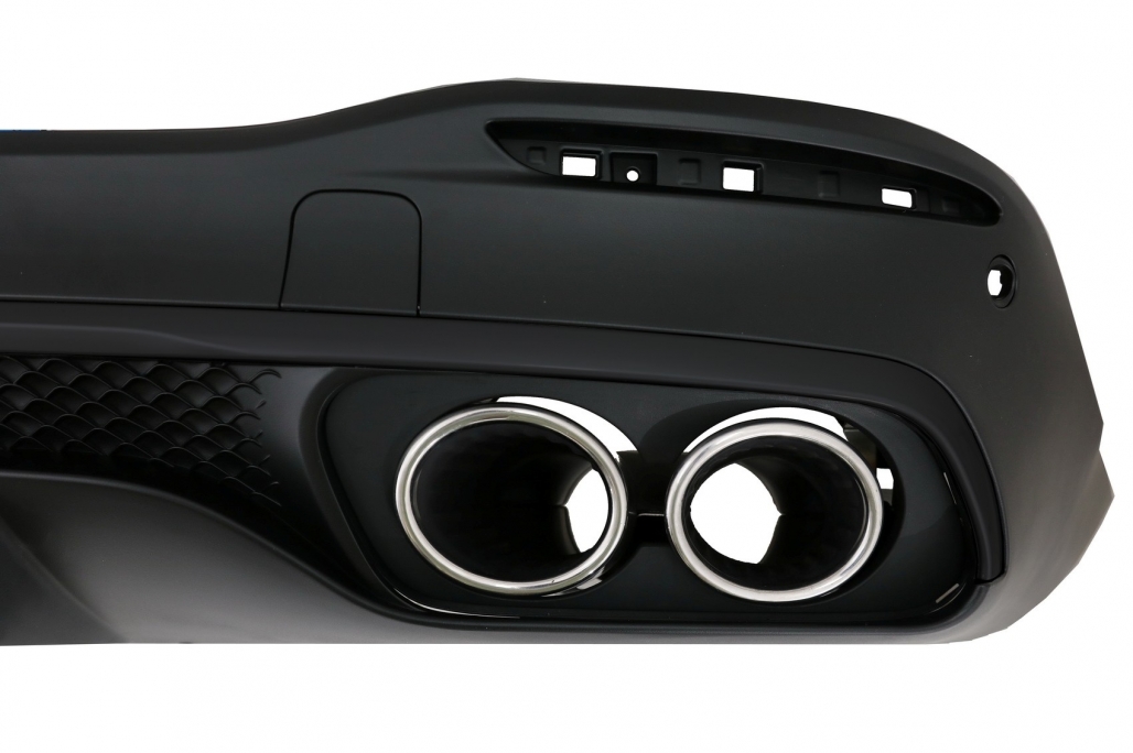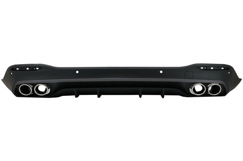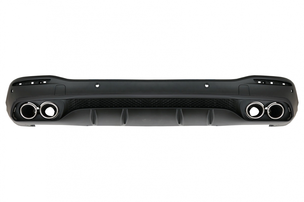 Acest difuzor spate Mercedes GLE W167 este fabricat din polipropilenă, un material apreciat pentru rezistență și durabilitate în utilizarea de zi cu zi. Ornamentele de evacuare sunt realizate din oțel inoxidabil 304, cu finisaj cromat, pentru un aspect rafinat și o rezistență bună în timp. Montajul ornamentelor nu necesită sudură, însă pentru instalare corectă este recomandat un service auto autorizat.