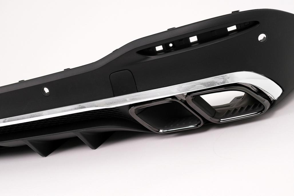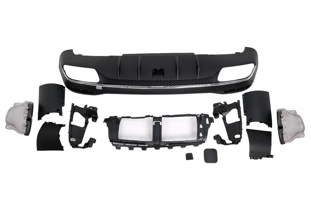 Setul include difuzor spate si ornamente evacuare, realizate din materiale rezistente, gandite pentru utilizare de durata si integrare estetica reusita pe masina.
