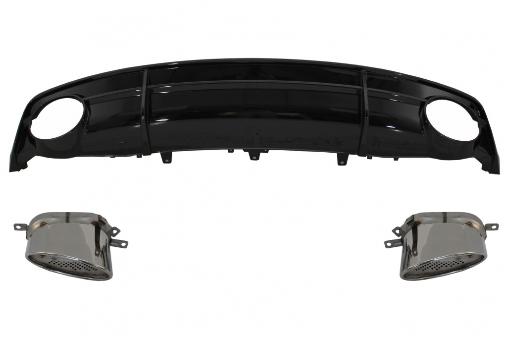 Difuzor Bara Spate Negru si Ornamente Evacuare compatibil cu Audi A7 4G Facelift (2015-2018) RS7 Design only S Line