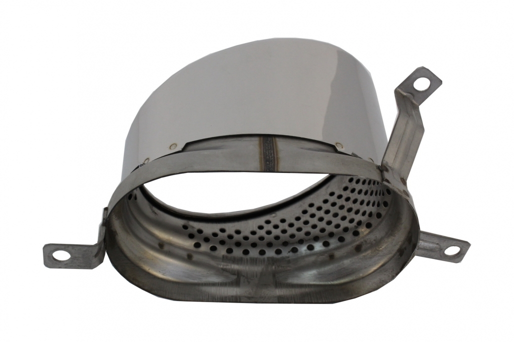 Difuzor de aer cu evacuare dubla fabricat din polipropilena de cea mai buna calitate. Finisaj: Negru Lucios/ Aluminiu Mat Ornamentele pentru sistemul de evacuare sunt fabricate din otel inoxidabil 304, finisaj crom.