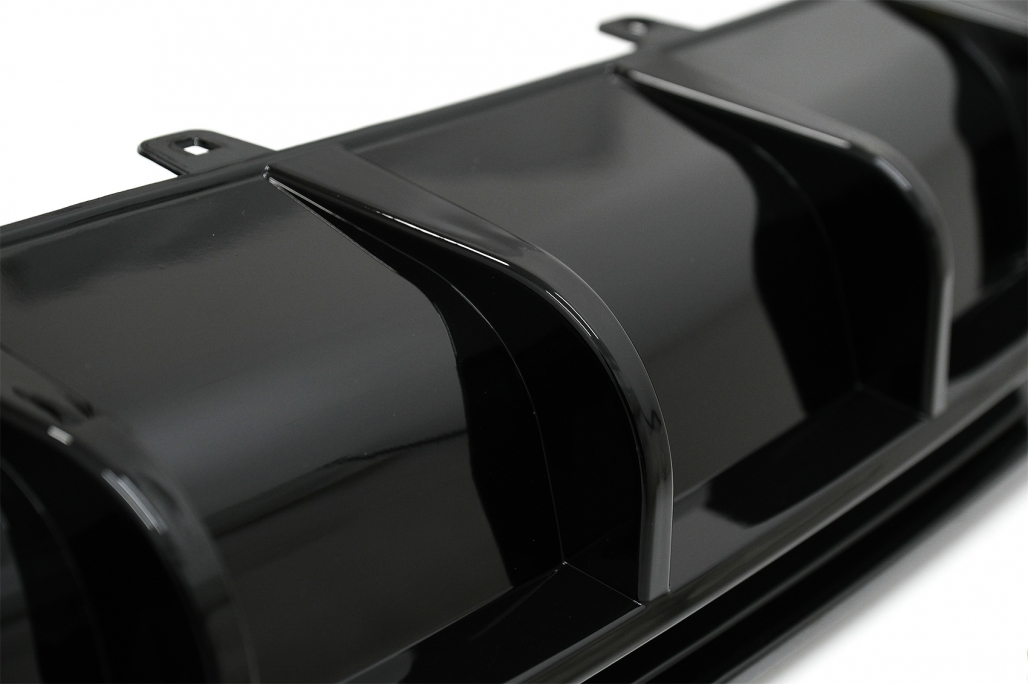 Difuzor RS6 Design cu evacuare dubla fabricat din polipropilena de cea mai buna calitate. Finisaj: Negru Lucios Ornamentele pentru sistemul de evacuare sunt fabricate din otel inoxidabil 304, finisaj crom. Utilizarea tuburilor suplimentare este obligatorie, altfel existand riscul de a se topi difuzorul.