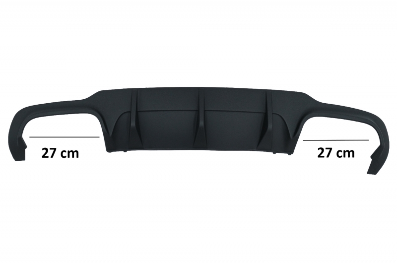 Difuzorul este fabricat din plastic ABS Finisaj: Negru Sistemul de ornamente pentru evacuare este fabricat din otel inoxidabil 304 de cea mai buna calitate. Pretul afisat reprezinta costul unui set (stanga-dreapta) Dimensiuni: Lungime: 360mm Latime: 240mm Diametru: 55mm