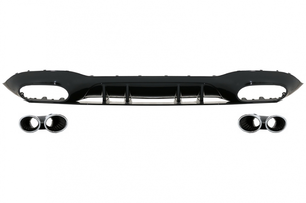 Difuzorul este fabricat din plastic ABS Echipat cu tipsurile de evacuare Finisaj: Negru Aceste ornamente sunt fabricate din otel inoxidabil 304 de cea mai buna calitate. Ornamente evacuare Negre Grila Aripa Aerisiri Laterale compatibil cu Mercedes A-Class W177 Culoare: Negru Lucios Material: ABS plastic Ornamnete bara fata Culoare: negru lucios Material: plastic ABS