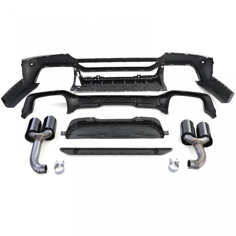 Difuzor Spate Conversie Performanță + Țevi de Evacuare Negre potrivit pentru BMW X4 G02 18-21 Performance AutoTuning