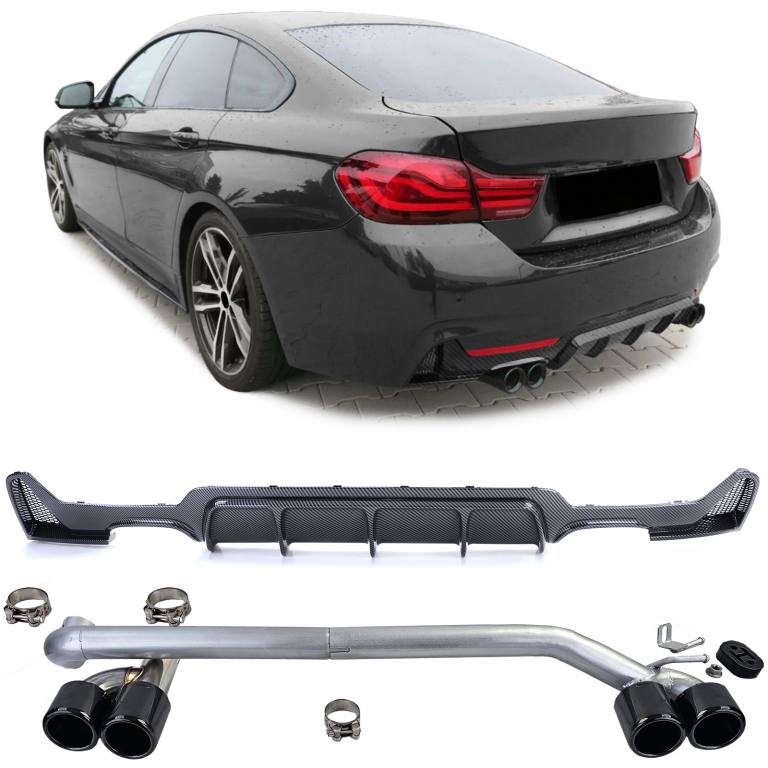 Difuzor spate din carbon + țeavă de eșapament cu aspect sportiv, potrivit pentru BMW F32 F33 F36 425 428 430 Performance AutoTuning