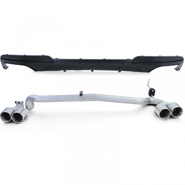 Kit de conversie a țevii de evacuare 4-pipe aspect sportDouă țevi de evacuare pe ambele părțiMaterial: Oțel inoxidabil- Inclusiv material de montaj- Incl. suport cu cauciuc pentru partea pasagerului- Instalarea se face la punctele de montare originale ale vehiculului- Aspect sportiv, îmbunătățind aspectul- Calitate foarte bunăÎn plus, veți primiDifuzor spate sportiv în aspect de performanțăNegru mat- Calitate foarte bună- Materialul este plastic ABS de înaltă calitate, similar cu piesa originală - potrivire 100% precisă- Înlocuire ușoară pentru difuzorul vechi- Complet vopsibilNou și ambalat originalSeria 5 BMW Tip F10 / F11Sedan / TouringPentru modelele cu 2 țevi de evacuare pe partea șoferului518d 520i 520d 525d 528i 530i 530dAnul 2010-2017Numai potrivit pentru bara de protecție cu pachet MNu pentru modelele cu bară de remorcareNu pentru vehicule cu AdBlueInformații de siguranță ale produsuluiProducător: Carparts-Online GmbHBrauckstr. 47, 58454 WittenContact: info@carparts-online.deInstrucțiuni de siguranță:Atenționare de siguranță pentru ambalaj:Există un risc de accidentare din colțuri ascuțite de hârtie, carton sau folie, precum și din clipsuri metalice ascuțite.Materialul de ambalare nu este o jucărie. Risc de sufocare pentru copii sau animale.Atenționare de siguranță pentru produs:Articolul poate avea margini ascuțite. Există un risc de accidentareRecomandăm instalarea de către un atelier auto profesionist