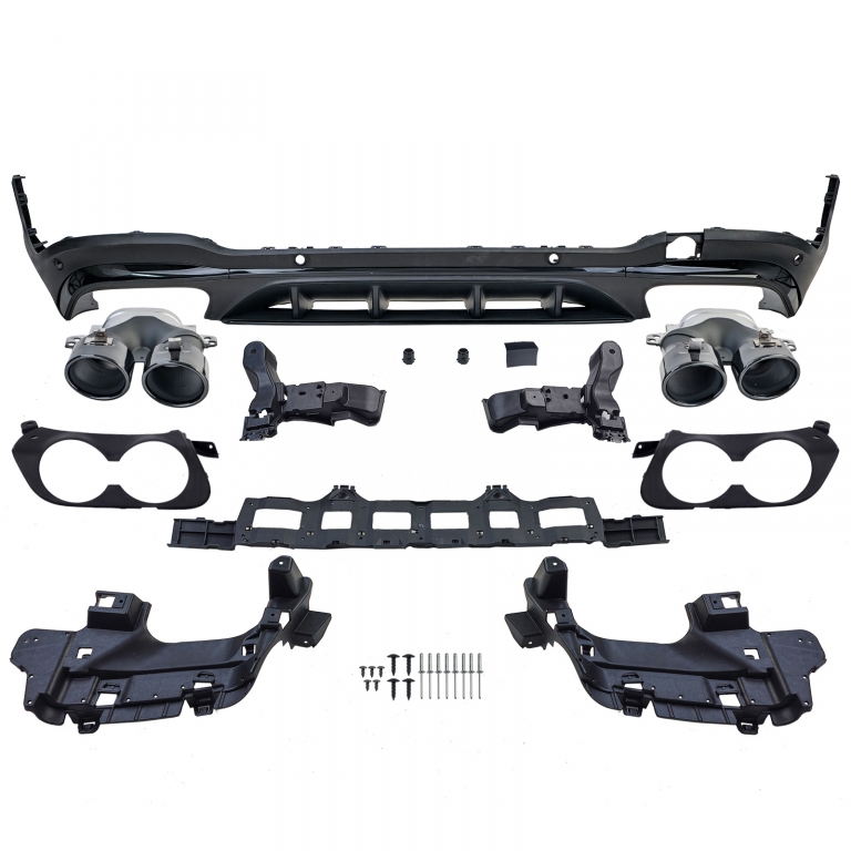 Difuzor spate sport + țevi de eșapament rotunde negre, potrivit pentru Mercedes GLC X253 19-22 facelift Performance AutoTuning