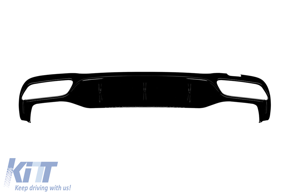 Difuzor tip E53 cu capace negre potrivit pentru bara spate A Design a Mercedes E-Class W213 sedan după 2016 -oo--oo-, cu garnitură neagră Performance AutoTuning