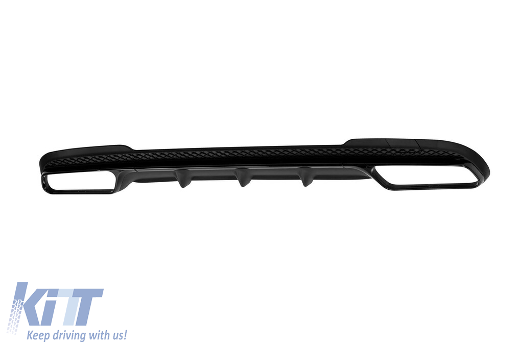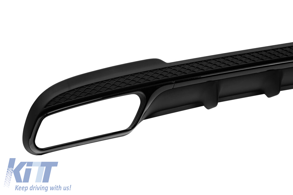 Difuzor tip E63 potrivit pentru bara spate A Design pe Mercedes E-Class W212 sedan 2014-2016, negru mat cu garnitură neagră, -oo--oo- Performance AutoTuning