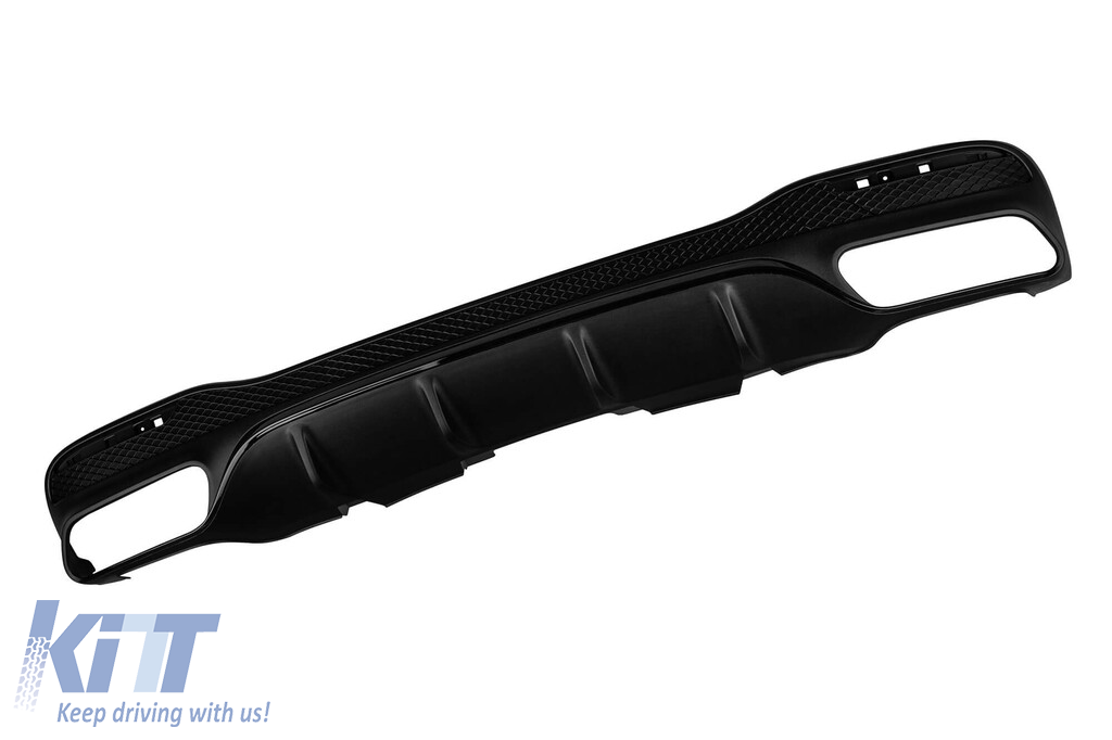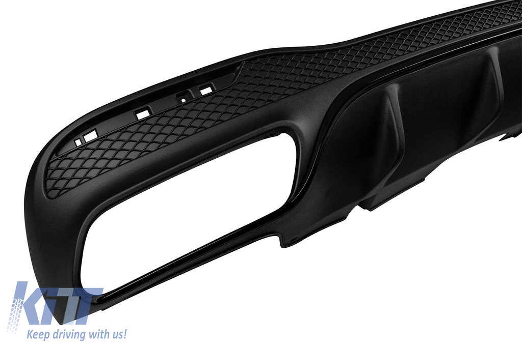 Difuzor tip GLE63 cu capace negre pentru bara A Design potrivit pentru Mercedes GLE SUV W166 cu două deschideri duble pentru evacuare, fabricat din plastic ABS de înaltă calitate. Difuzorul se potrivește perfect. Oferă un aspect unic și diferit vehiculului. Difuzorul de tuning dispune de o deschidere dublă pe ambele părți, stânga și dreapta. Această deschidere este potrivită pentru un singur capăt de evacuare, așa cum este indicat în grafic. De asemenea, poate fi montat un capăt oval. Acest model de difuzor este destinat pentru o bară de tuning. Acest lucru se datorează formei specifice a tuningului comparativ cu bara standard instalată de producătorul vehiculului. Difuzorul este fabricat din plastic ABS elastic, rezistent la impact, de înaltă calitate. Fiecare colț și deschidere a difuzorului sunt procesate cu grijă pentru a evita marginile ascuțite neplăcute, realizând astfel un element de potrivire perfect de 100%. Compatibilitate: Informații tehnice: • Greutate: 5.00 • Producător: AUTOPRO • EAN: 1000005248 • Culoare: Negru mat cu margine de lac negru • Tip de difuzor: Pentru bară de tuning • Tip de deschideri pentru evacuare: -oo-oo-, -oo-oo-