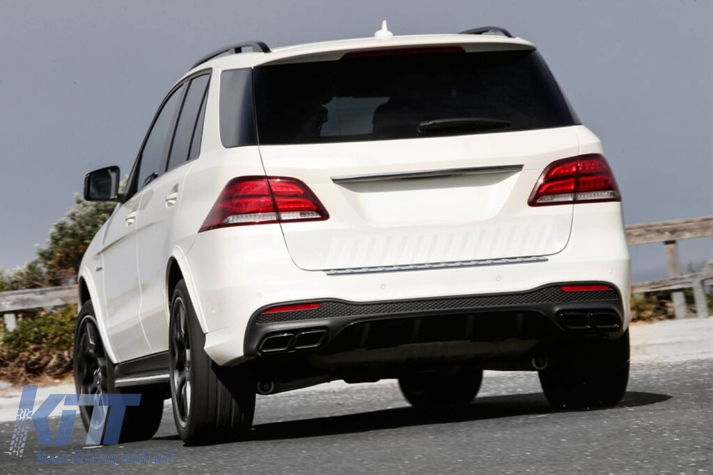 Difuzor tip GLE63 cu capace negre potrivit pentru bara spate A Design pe Mercedes GLE W166 2015-2019 -oo--oo-, cu garnitură neagră Performance AutoTuning