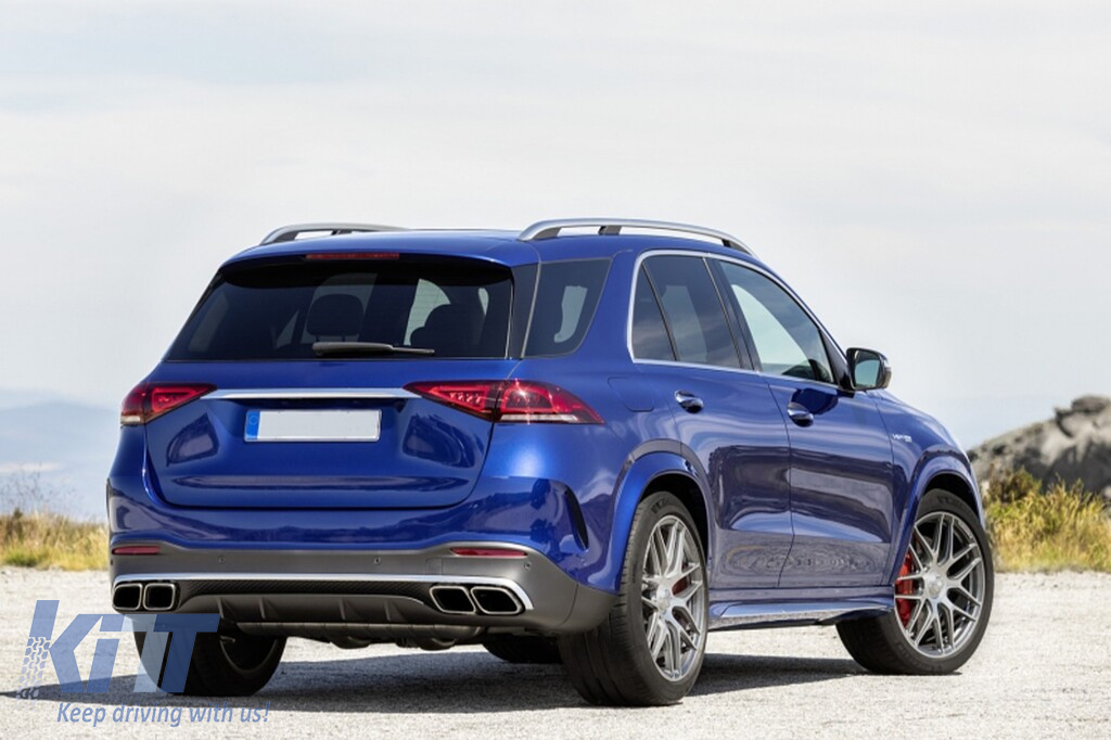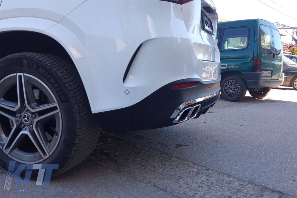 Difuzor tip GLE63 cu capete cromate pentru bara spate A Design potrivit pentru Mercedes GLE W167 după 2019 -oo--oo-, garnitură cromată Performance AutoTuning