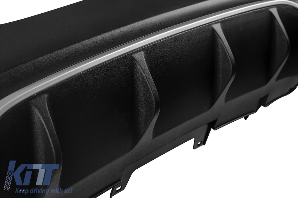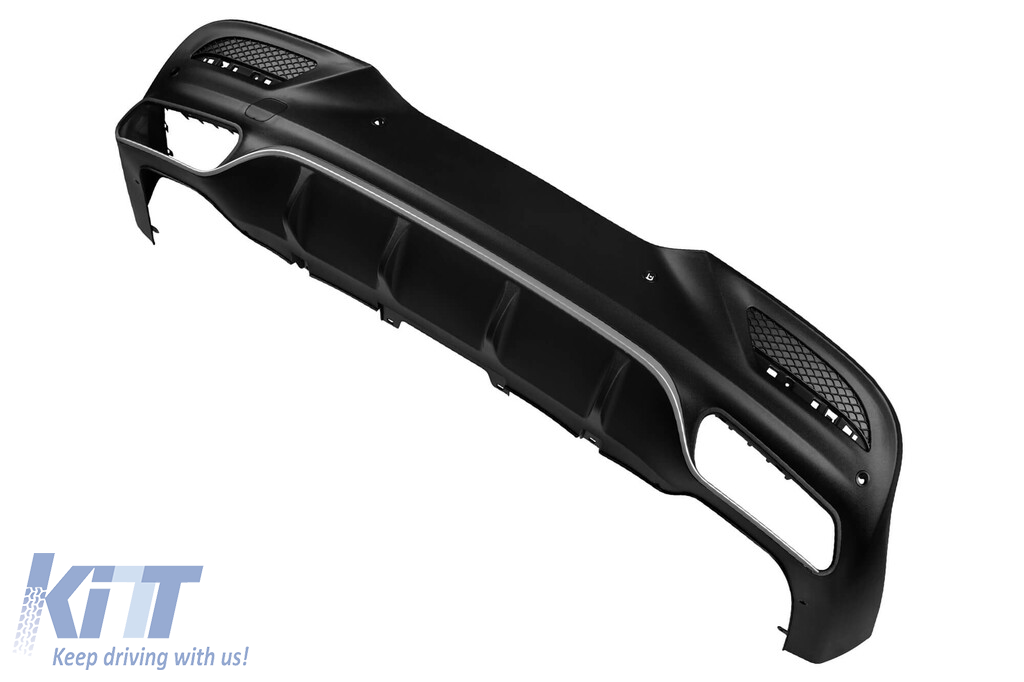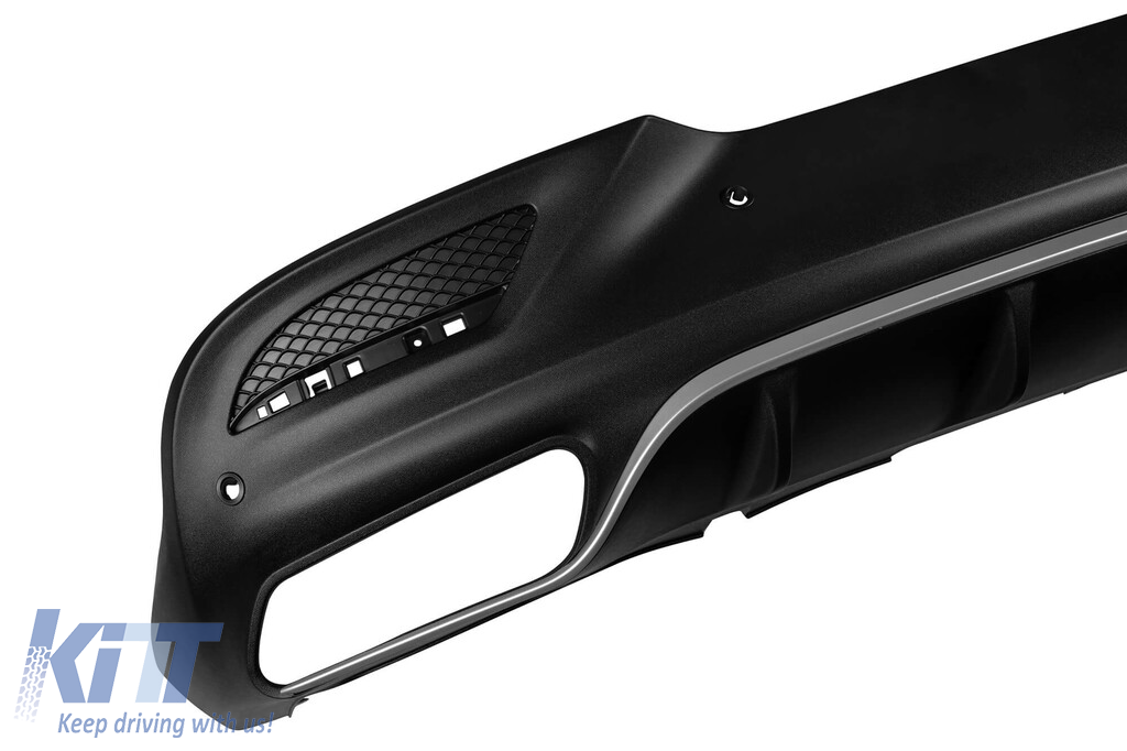 Difuzor tip GLE63 potrivit pentru bara de protecție A Design pentru Mercedes GLE Coupe C292 cu două deschideri duble pentru evacuare, fabricat din plastic ABS de înaltă calitate. Difuzorul se potrivește perfect. Oferă un aspect unic și diferit vehiculului. Difuzorul de tuning dispune de o deschidere dublă pe partea stângă și dreaptă. Această deschidere este potrivită pentru un singur capăt de evacuare, așa cum este indicat în grafic. De asemenea, poate acomoda un capăt oval. Acest model de difuzor este destinat unei bare de protecție de tuning. Acest lucru se datorează formei specifice a tuningului comparativ cu bara de protecție standard instalată de producătorul vehiculului. Difuzorul este fabricat din plastic ABS elastic, rezistent la impact și de înaltă calitate. Fiecare colț și deschidere a difuzorului sunt procesate cu grijă pentru a evita marginile ascuțite neplăcute, astfel obținându-se elementul perfect pentru o potrivire de 100%. Compatibilitate: Informații tehnice: • Greutate: 5.00 • Producător: AUTOPRO • EAN: 1000000556 • Culoare: Negru mat cu garnitură cromată • Tip de difuzor: Pentru bara de protecție de tuning • Tip de deschideri pentru evacuare: -oo-oo-, -oo-oo-