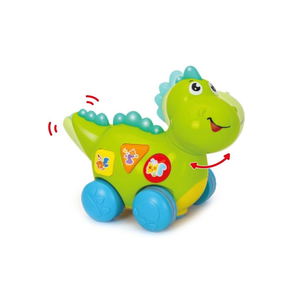 Transforma joaca intr-o experienta plina de descoperiri cu acest dinozaur interactiv pentru bebe, conceput pentru a stimula atentia, curiozitatea si coordonarea copilului. Cu lumini colorate, sunete, melodii si miscari amuzante ale capului si coditei, jucaria ii incurajeaza pe cei mici sa exploreze prin apasarea butoanelor si urmarirea efectelor interactive.