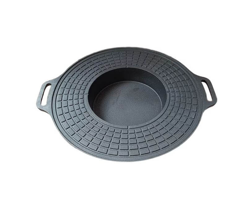 Pregateste rapid si gustos mancaruri in aer liber cu acest disc adanc din fonta de 49 cm, ideal pentru cartofi prajiti, carne, legume sau tocane. Fonta pastreaza excelent caldura si o distribuie uniform, astfel incat obtii rumenire frumoasa si gatire constanta, chiar si pe foc deschis.