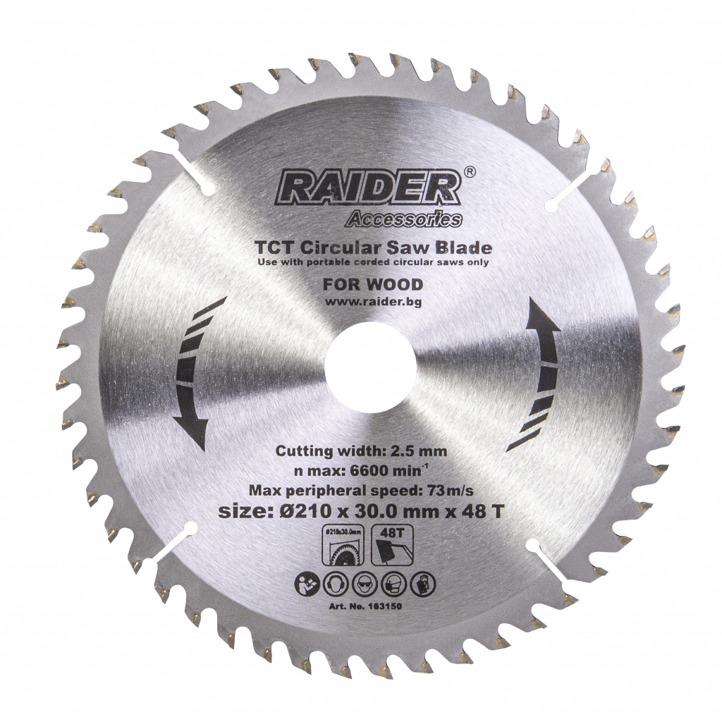 Utilizare: se monteaza pe un fierastrau circular compatibil cu diametrul discului de 210 mm si alezajul de 30 mm. Se foloseste pentru debitarea placilor si pieselor din lemn, respectand sensul de rotatie si specificatiile echipamentului.