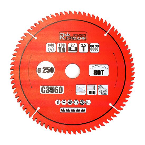 Disc circular vidia pentru aluminiu, lemn, 80 dinti, 250x30 mm, Richmann Exclusive