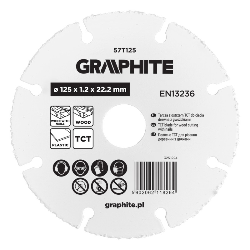 Disc de taiere, lama TCT, pentru lemn (cu/fara cuie), plastic 125 x 1.2 x 22.22 mm HardWork ToolsRange