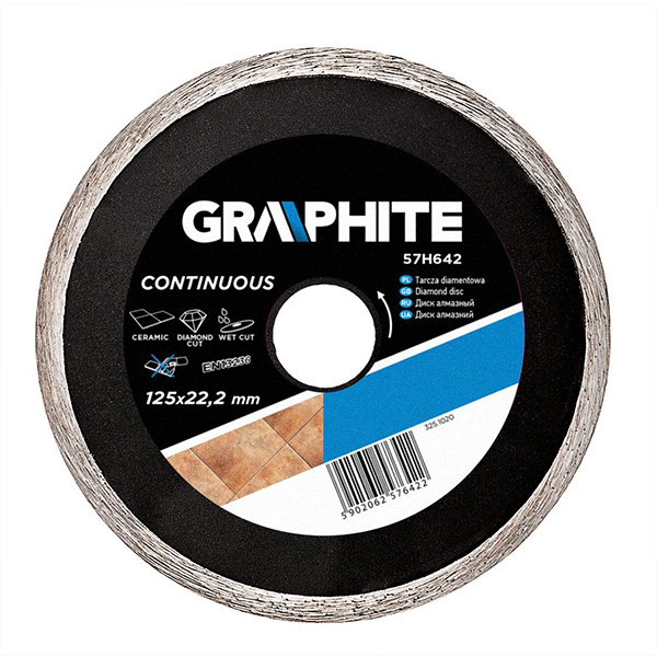 Disc diamantat continiuu debitare ceramica 125mm/22,2mm GRAPHITE 57H642 HardWork ToolsRange