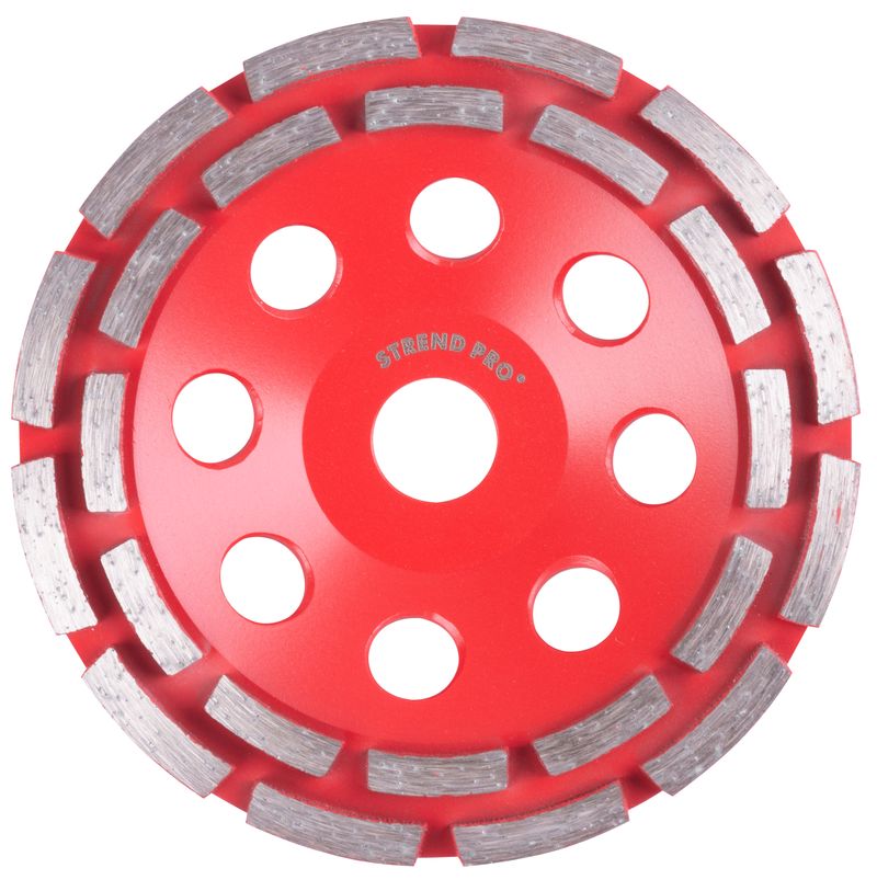 Discul diamantat tip cupă dublu rând Strend Pro Premium este alegerea potrivită pentru șlefuirea betonului și a suprafețelor minerale, atât la lucru uscat, cât și la lucru umed. Este compatibil cu polizoare unghiulare și oferă o îndepărtare eficientă a materialului, cu durată mare de viață datorită segmentelor diamantate aplicate precis.