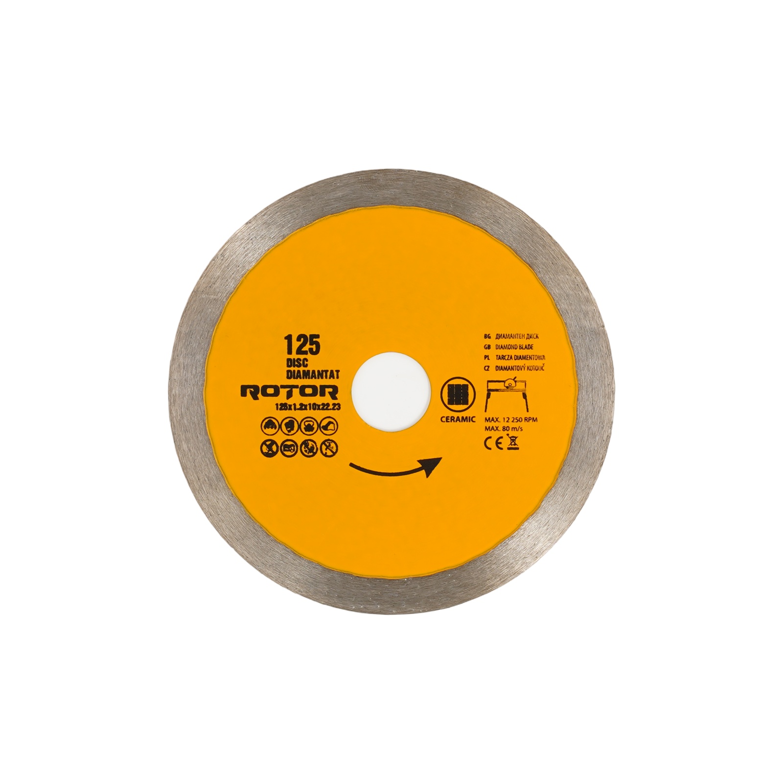 Disc diamantat Rotor 125 mm, muchie continuă, pentru ceramică, 22,23 mm