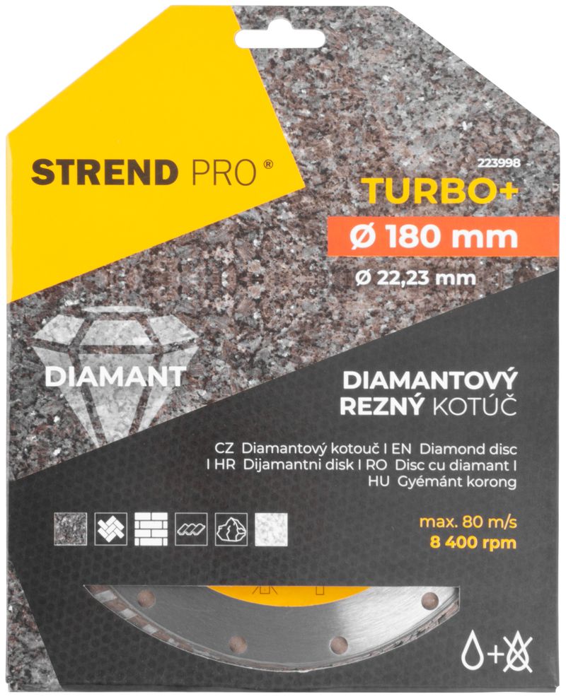 Discul diamantat Strend Pro Turbo+ 180 mm este potrivit atat pentru pasionatii de bricolaj, cat si pentru profesionisti. Este conceput pentru taiere umeda si uscata, oferind taieturi mai rapide si muchii mai curate, cu risc redus de ciobire a materialului.