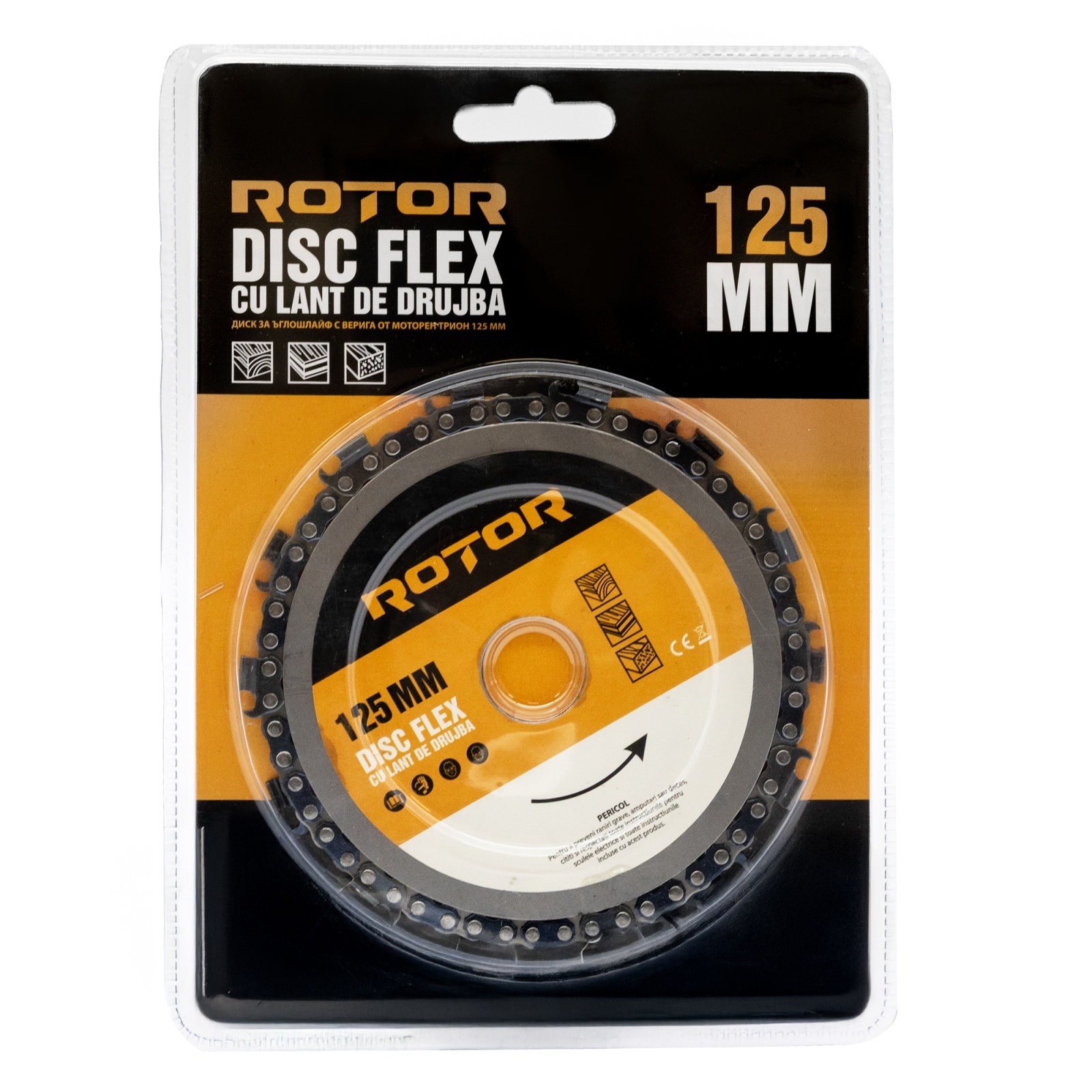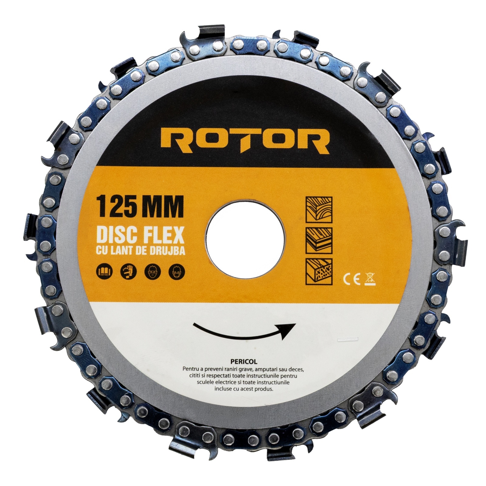 Discul flex cu lanț de drujbă 125 mm Rotor este alegerea potrivită pentru lucrări de sculptare, debitare și modelare a lemnului. Oferă control bun în timpul utilizării, îndepărtare rapidă a materialului și compatibilitate cu majoritatea polizoarelor unghiulare standard. Este util atât pentru meșteri, cât și pentru utilizatori care lucrează ocazional în atelier sau gospodărie.