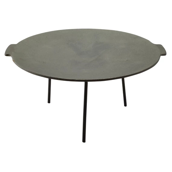 Discul grill din fontă, cu diametrul de 44 cm, este alegerea ideală pentru gătit în aer liber, petreceri în grădină și preparate tradiționale la disc. Fonta naturală asigură o distribuție uniformă a căldurii și o menținere excelentă a temperaturii, astfel încât preparatele să fie bine pătrunse, rumenite la exterior și suculente la interior. Cele trei picioare stabile, cu lungimea de 18,5 cm, permit utilizarea sigură deasupra focului deschis. Construcția robustă garantează durabilitate pe termen lung, dacă este întreținut corespunzător.