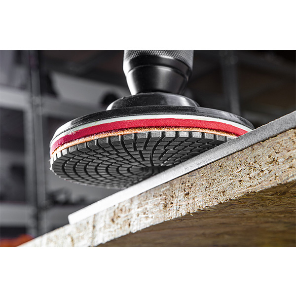 - Discheta se monteaza pe un suport cauciucat, iar aceasta poate fi utilizata cu ajutorul unui polizor unghiular (flex) sau a unei masini de gaurit (bormasina)