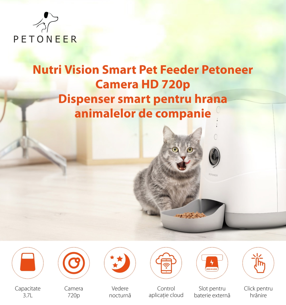 Dispenser smart pentru hrana animalelor de companie Petoneer PF007 Nutri Vision, 3.7 L, Camera, Control Vocal SmartElectro IntelligentHouse