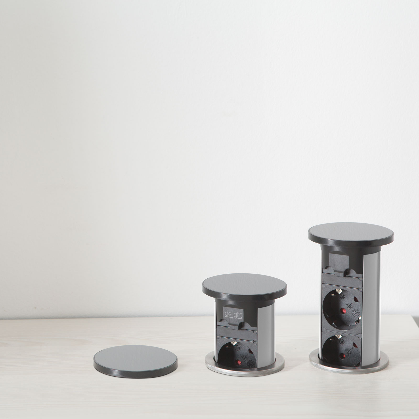 Distribuitor ascuns, retractabil, motorizat, pentru birou si uz casnic, cu carcasă metalică