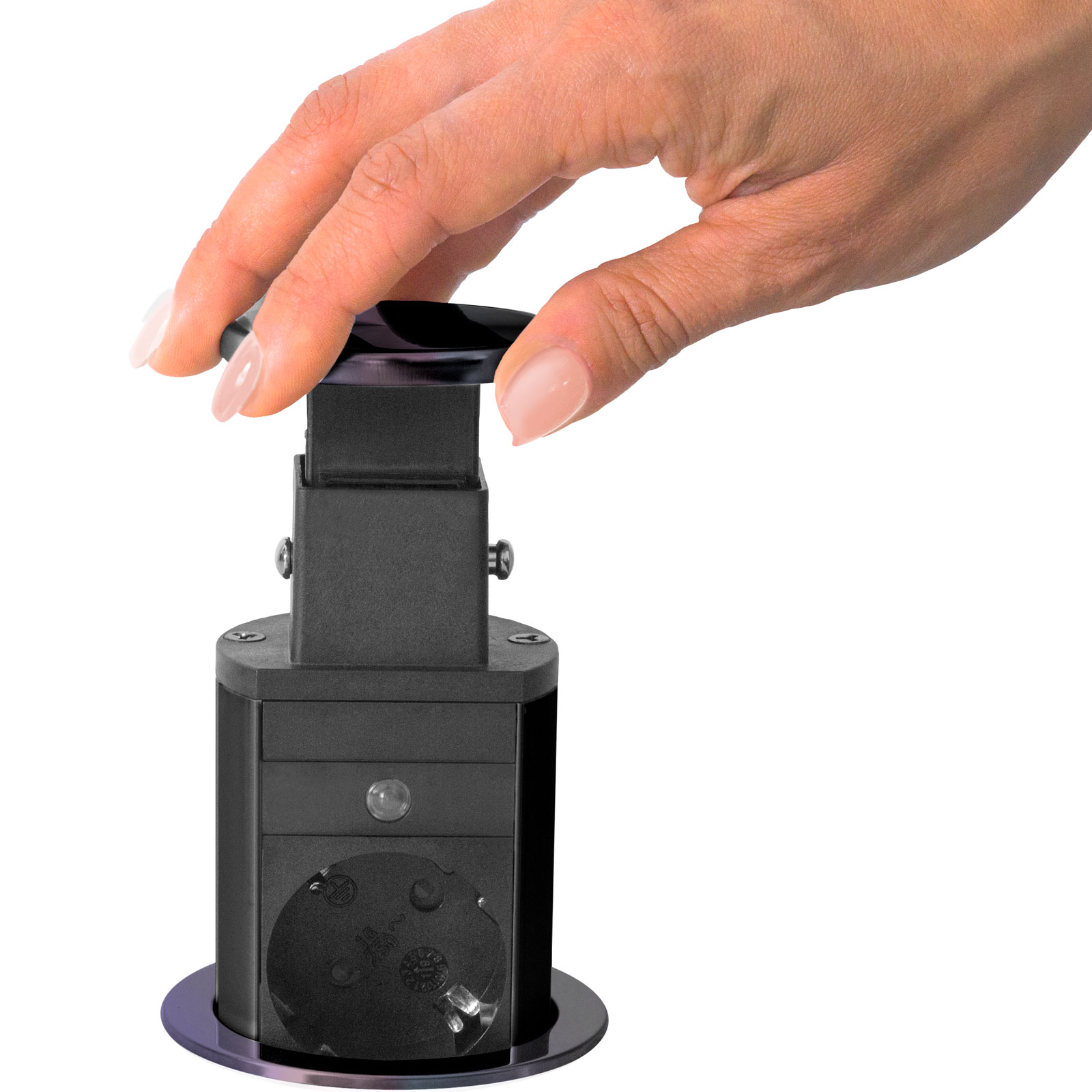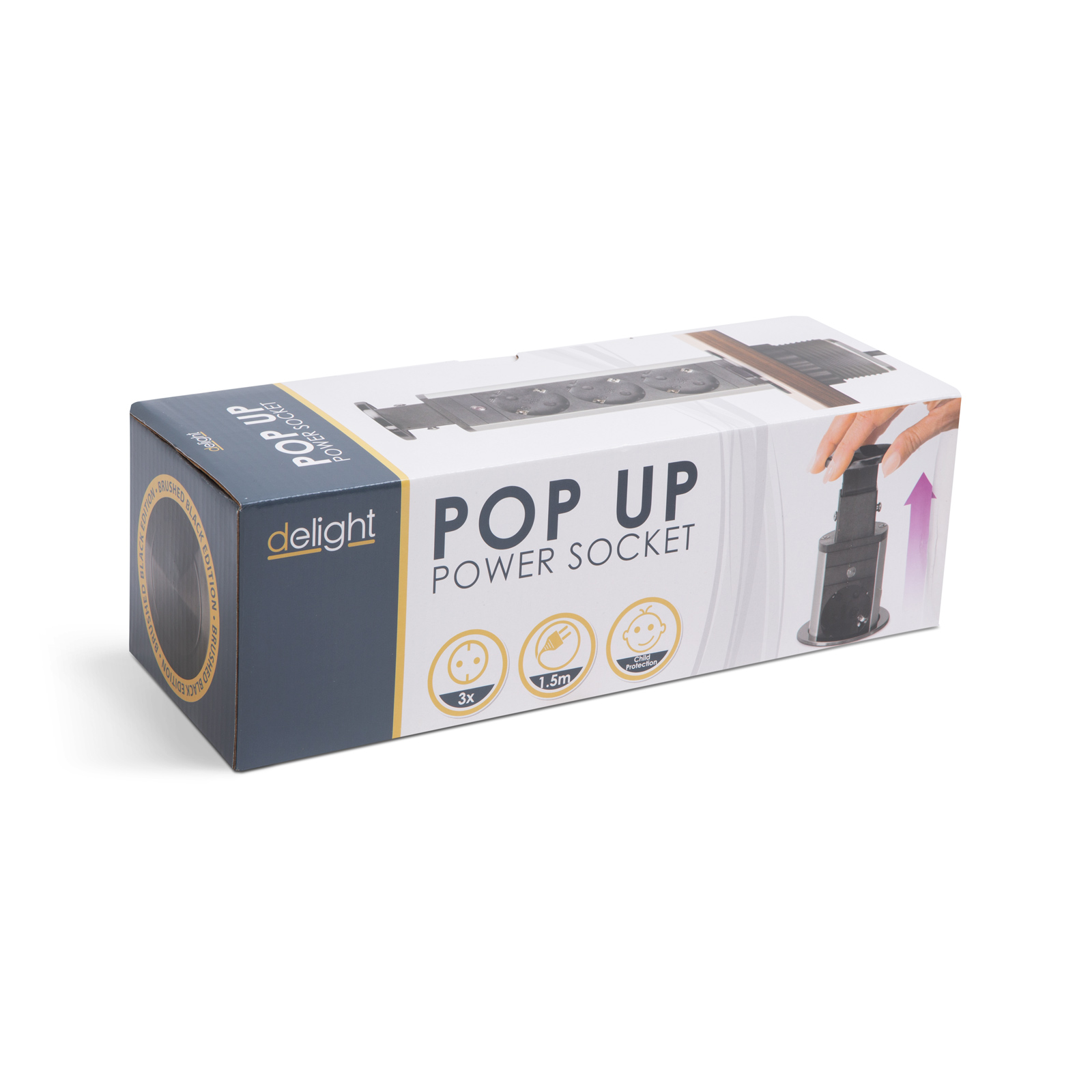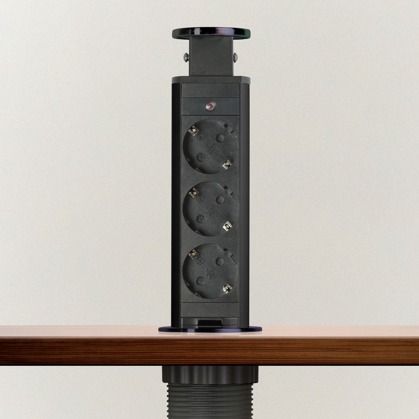 Distribuitor pop-up cu carcasă metalică și 3 prize de protecție pentru copii, pentru birouri și case.