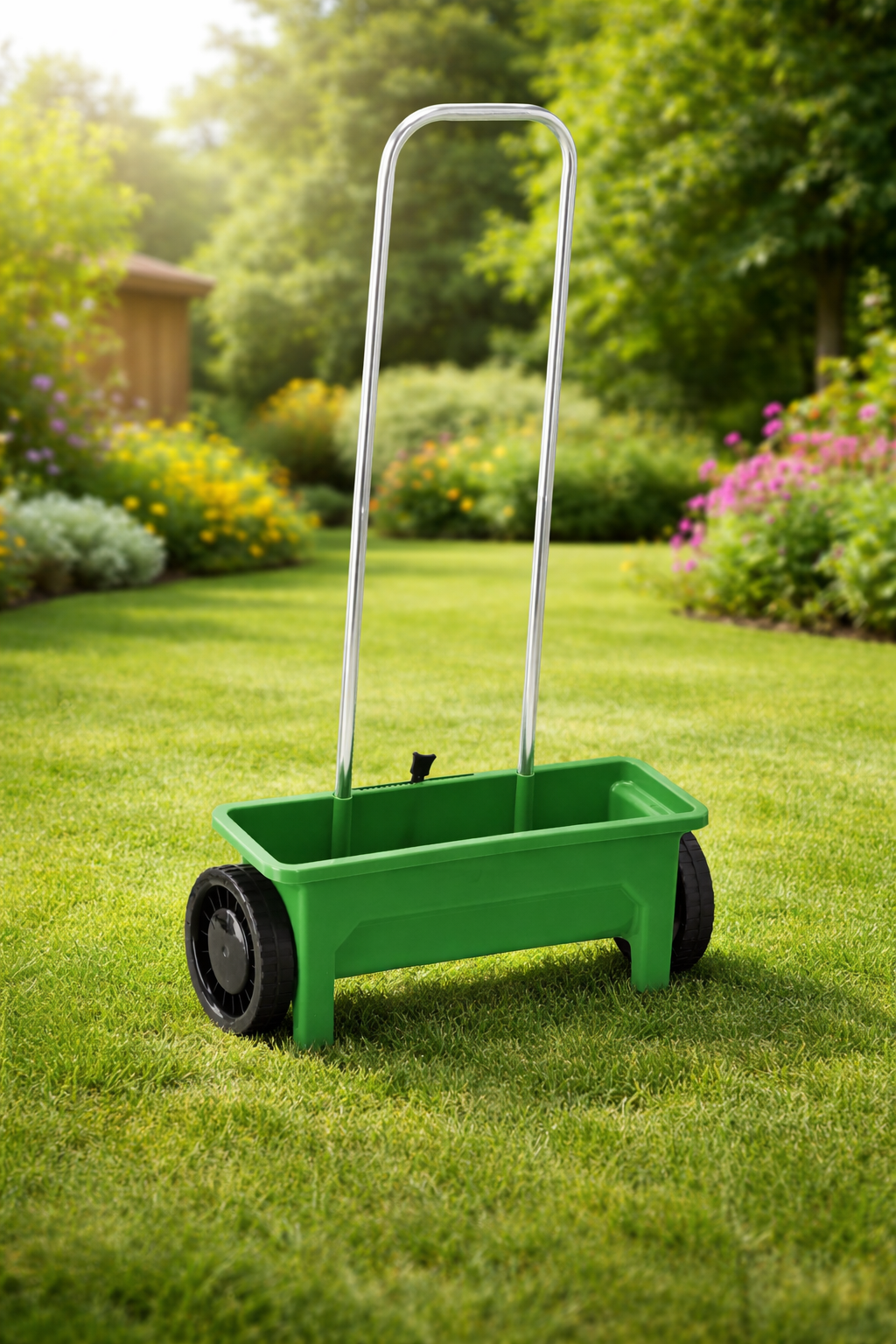 Designul ergonomic, rotile mari si suportul stabil pentru umplere il fac usor de manevrat si confortabil in utilizare. Este o solutie practica pentru intretinerea peluzei si pentru activitati sezoniere, oferind control bun asupra cantitatii distribuite.