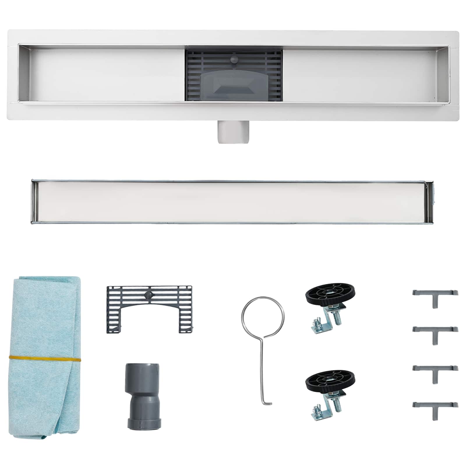- Kit complet de drenaj: Vine cu tot ce ai nevoie: pânză impermeabilă, tub din plastic și picioare reglabile. Toate astea fac instalarea simplă și asigură un flux bun al apei, fără să se acumuleze apă în zona dușului.