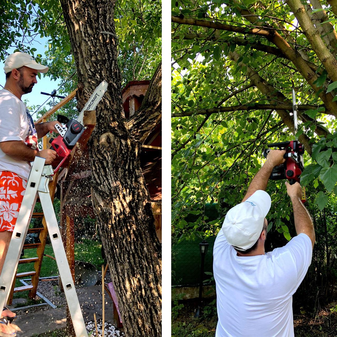 - Are o putere suficienta deoarece dispune de 2 acumulatori cu o putere de 20 V fiecare, pentru a taia cherestea, busteni, a pregati materialul pentru lucrarile de constructie, precum si pentru a toaleta copacii.