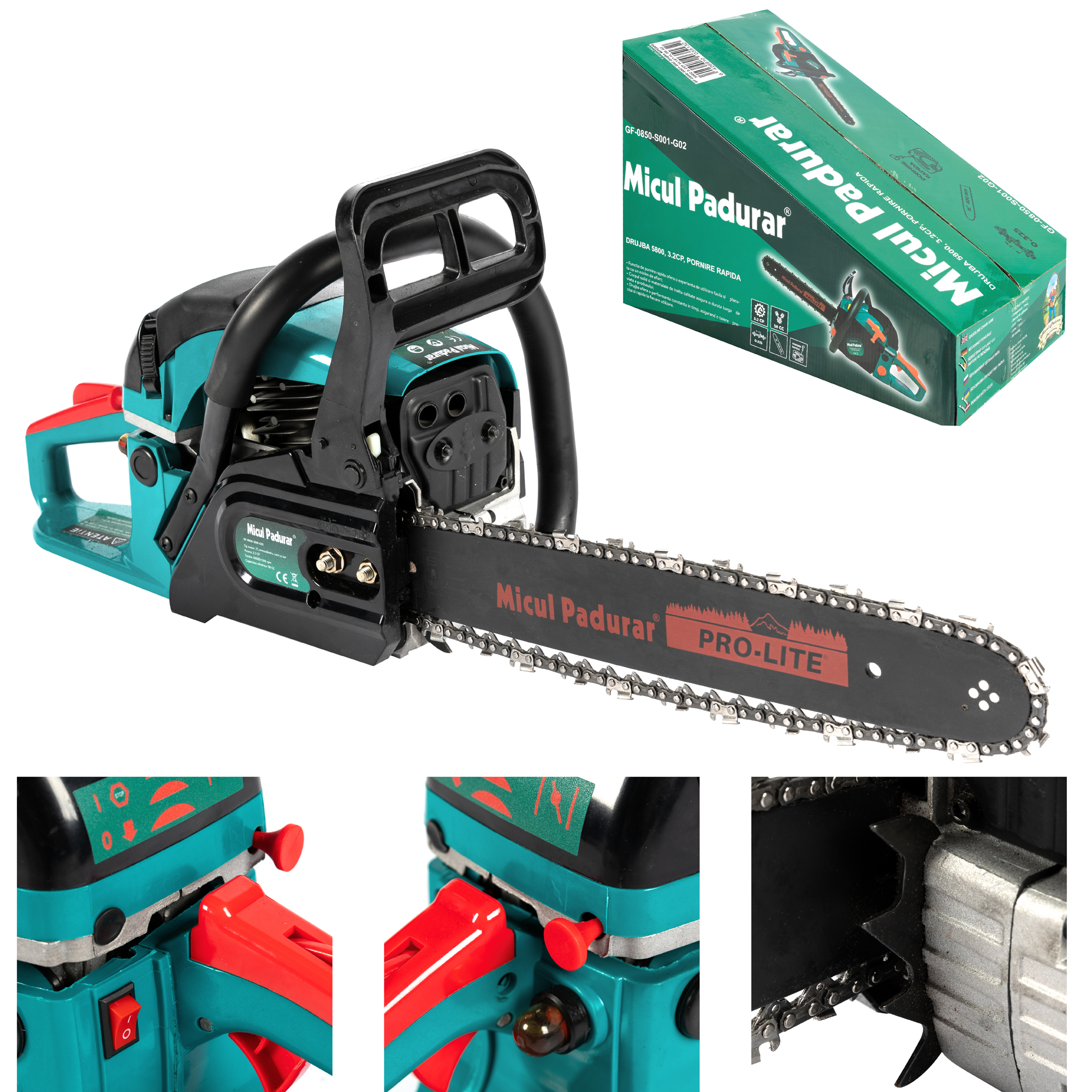 Putere și eficiență pentru orice lucrare de tăiere! Drujba Micul Pădurar 5800 GF-0850-S001-G02 este un echipament fiabil, conceput pentru gospodării, livezi și lucrări de întreținere a vegetației. Cu un motor de 3.2CP și 58CC, această drujbă oferă performanță optimizată, consum redus de carburant cu până la 30% și emisii scăzute cu până la 50%. Nu este destinată utilizării în regim industrial.