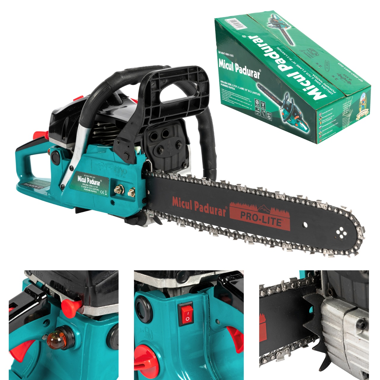 Drujbă pe benzină Micul Pădurar 5200 52cc, 2.7CP, 2 lame 16" + 2 lanțuri