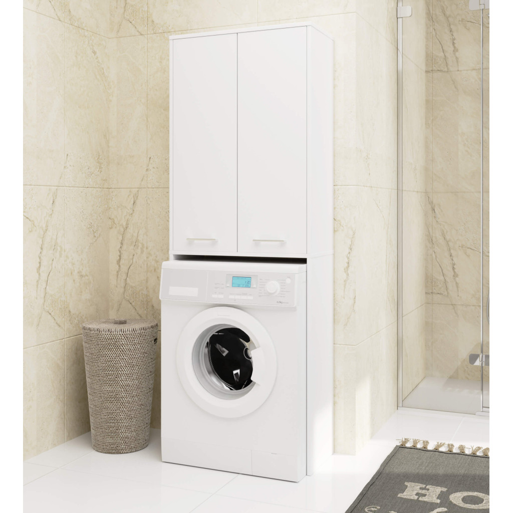 Dulap baie alb pentru masina de spalat, cu 2 usi si 4 rafturi, 64x30x180 cm