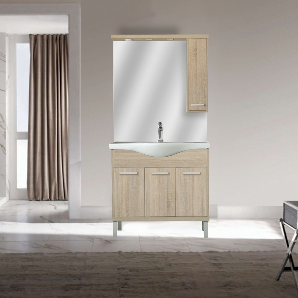 - Design curat, cu aspect de mobilier baie modern în nuanță stejar Sonoma